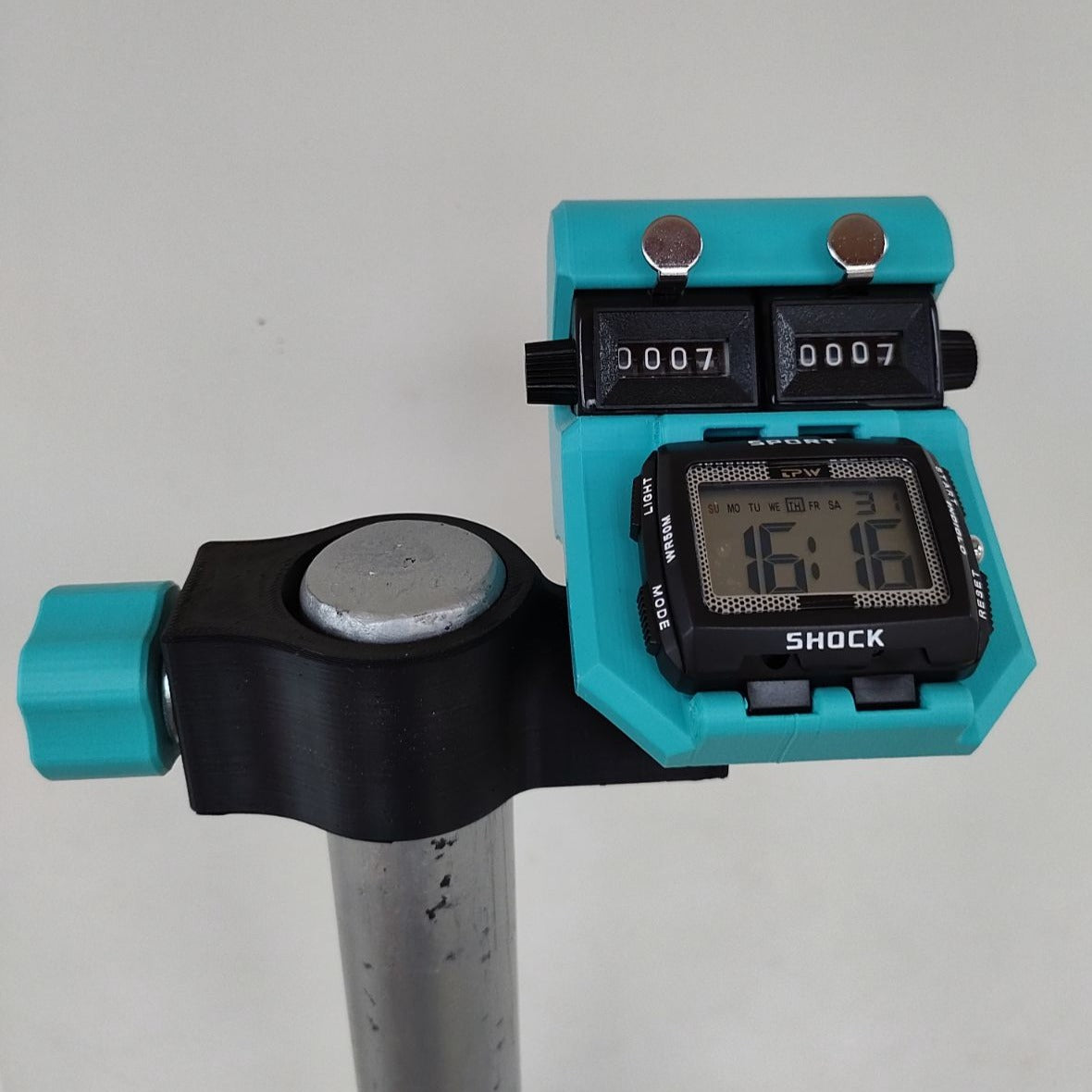 🟦 MX2S® Turquoise, avec ces 2 compteurs, une montre à grand écran. Compteur réglable en inclinaison par crans, le support ce positionnant à gauche ou à droite.
